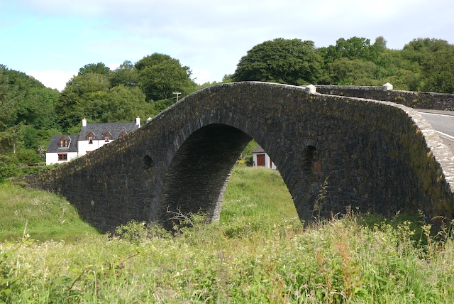 On our way to the Isle of Skye, we took a longer, more interesting route, and we went to the Isle of Seil, which is a small island on the west coast of Scotland. The island is very pretty, and there are a couple of pretty, small villages. One big attraction is the "Atlantic Bridge". This is the bridge over the Atlantic Ocean that leads onto the island. It was built in 1792! The "Atlantic Bridge" sounds large doesn't it? Take a look at the picture. There's only one lane for both directions. When you are going up the "hump", you can't see if a car is coming in the opposite direction. What Fun! And yes, that little tiny body of water that the bridge is crossing is, technically, the Atlantic Ocean.