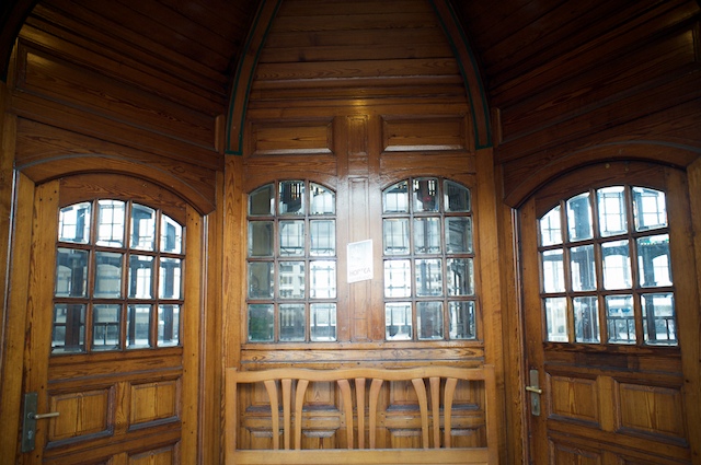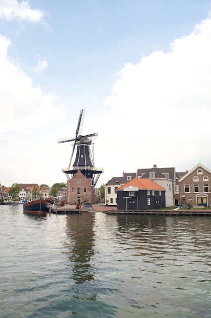 On Friday morning, it appeared to be clear weather, so we decided to take another trip outside town. This time to the city of Haarlem, which was recommended because it has a pretty, old, central section. Once again, we took a tram to the central station, and then, after a bit of confused guessing, got tickets, and figured out which train to take. We got on the train, and Donnie settled in her seat and prepared herself for a long restful ride. The ride was only 10 minutes long. As we approached the Haarlem train station, out of the window I saw a windmill. We got off the train and were immediately dazzled by the wonderful old train station.
