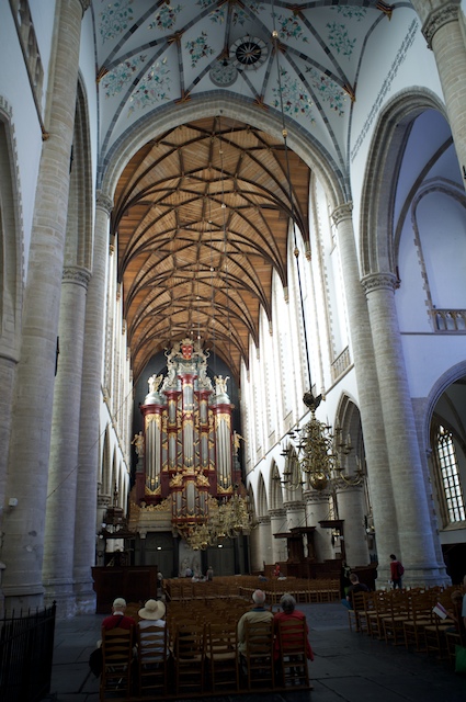 After lunch, about 2:00, we went into the St. Bavo Church. Wow! The St. Bavo Church is dominated by a huge pipe organ at one end of the nave. The organ dates from the early 1700's, is almost 100 feet high, has over 5000 pipes and was once played by Mozart and Handel. The organ was playing! The church organist was practicing for Sunday's service. It was marvelous. The St. Bavo Church was very plain and yet beautiful inside also. The floor was made up entirely of graves.
