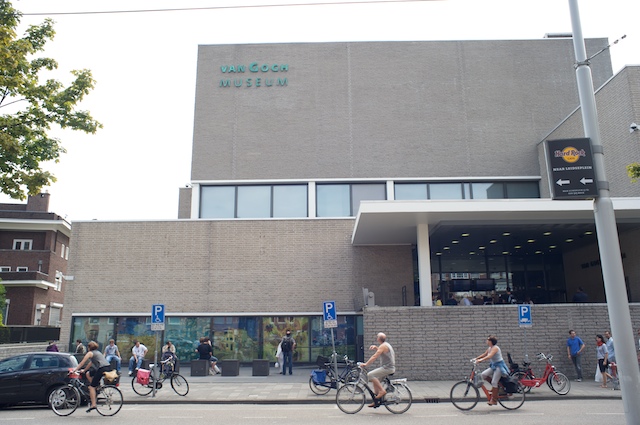 The weather was warm and sunny, but we had put off museum day too long, so we decided to head to the Van Gogh museum, one of our high-priority destinations. I had grabbed one of my short-sleeve shirts to wear, a light pink one, which was an unfortunate decision, but more on that later. We took a tram, of course, to the Van Gogh museum. By now, we were getting pretty good at using the tram system with the city map. The museum is housed in a bland, nondescript, boring, 1970's style concrete, rectilinear building that is entirely at odds with what it houses. We walked right past the long line of people waiting to buy tickets, because we had asked our desk-clerk if there was a place to buy tickets that allowed you to avoid waiting on line (quite a few European museums have this). He smiled, opened a drawer, and sold us two tickets, charging them to our room bill.