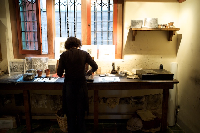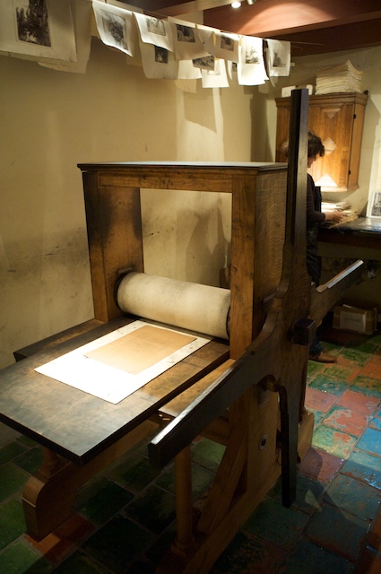 Sunday, August 2, our last day in Amsterdam was a quieter, "down" day for us. In the morning, we went to Rembrandt's House, which is really the house he lived and worked in for much of his career. The house and all of his belongings were sold at auction when he had financial problems, but the inventory of his belongings survived, along with drawings of what some of the rooms looked like, so they have re-created several rooms to look the way they did when he lived there. The most impressive room was his studio, which had an easel in the same place that Rembrandt did, and all kinds of interesting objects in the room. We weren't allowed to take pictures, so my shutter finger was twitching. In another room, the room he used to make prints, a young woman explained and demonstrated print making and explained the difference between engravings, dry-point, and etchings. The Rembrandt House has a large collection of his prints, and we found out that during his life, he was more famous as a print artist than as a painter. The prints were fantastic and I think maybe more beautiful than the paintings. The detail in them was amazing. There is a famous self-portrait, that the Rembrandt House uses as a logo, that shows him as a young man with a surprised look on his face (It reminds us of Harpo Marx!). The actual print is tiny, maybe an inch by an inch-and-a-half, and incredibly detailed.