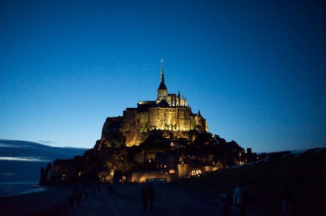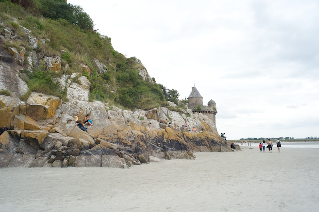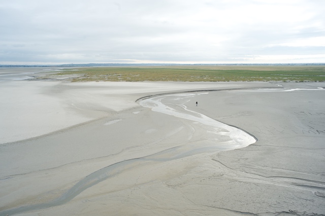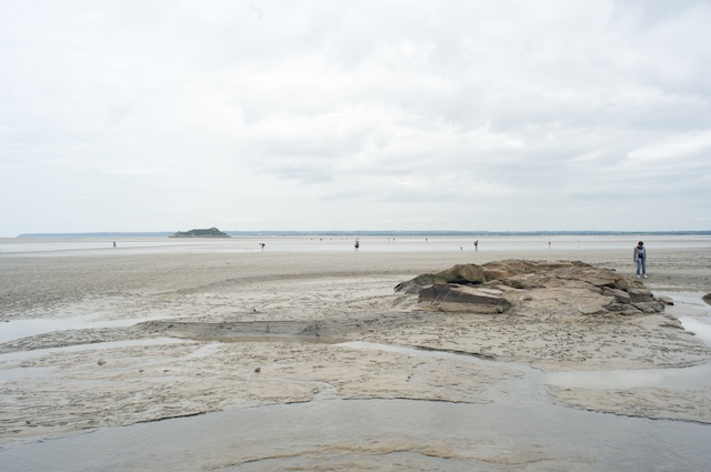 We walked around the island, only accompanied by a hundred or so people, which at this point was like being alone. I mentally classified the people into several groups: Those who walked in the mud, I called the foot-washers (as we walked out of the entrance to the island, there was a fountain with a sign that said, in French, "no foot washing"). Those who walked a little further away from the island, I called the waders (when the tide came in, they would be up to their knees probably). Those even further away, I called the swimmers. There were even a few walking quite far out. I called them the drowners.