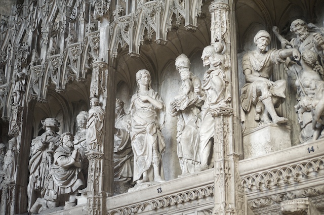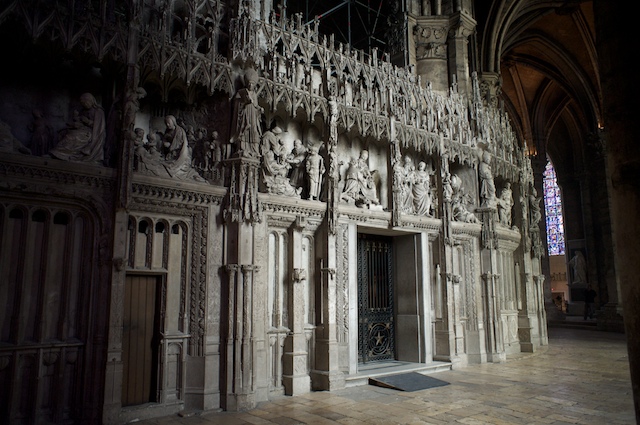 Some of the section known as the choir, which is the enclosed section behind the transept, was closed off because it was being restored. Inside you could hear lots of hammers and chisels, striking stone. I realized that this was very, very appropriate, because that's what people heard in the cathedral for hundreds of years, while it was being constructed and updated.
