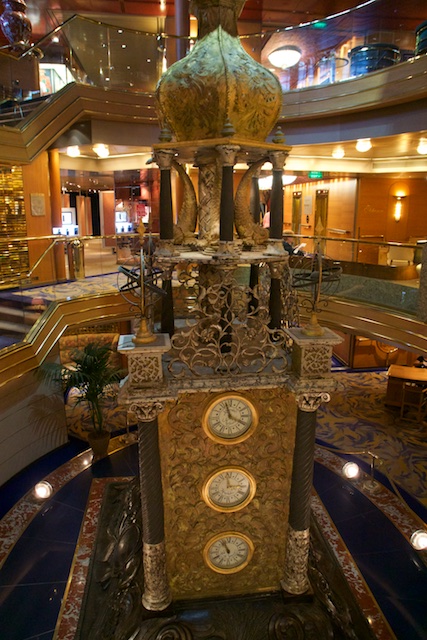 After months of anticipation, weeks of preparation, days of transportation and hours of exasperation, we were finally on the M.S. Rotterdam. As we walked to our stateroom, we were both very impressed. The ship is quite elegant and attractive. It’s beautifully designed and decorated and loaded with exquisite art objects everywhere, which we had read about: paintings, sculptures, prints, posters, primitive masks, ship models, even full size replicas of Chinese Terra-cotta warriors. More about that later. We will have to explore all of the art during the cruise. I intend to take a lot of pictures of the ship.
