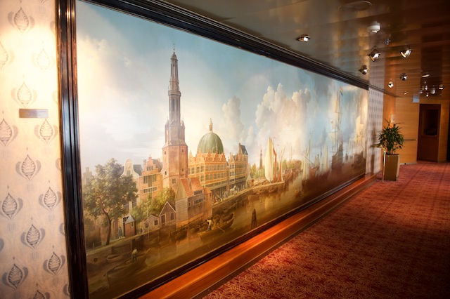 As we were wandering around the ship, we have been impressed by all of the artwork. You turn a corner or walk into a stairway landing and see an old cruise line poster, or Japanese Samurai armor, or a large ornate marquetry covered cabinet, or a very complex ship model made of small pieces of bone or some ancient Chinese figures. We haven’t seen all the art yet, and there is a lot if it. They all have brass plaques describing them, and most are real, not reproductions and many are extraordinarily old. This is not the crummy “art” that they sell in the onboard “art auctions," but the real thing and is part of the ship’s decor, not for sale. Fantastic ! This is not the Disney Cruise Line.