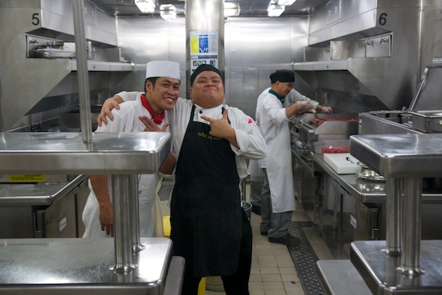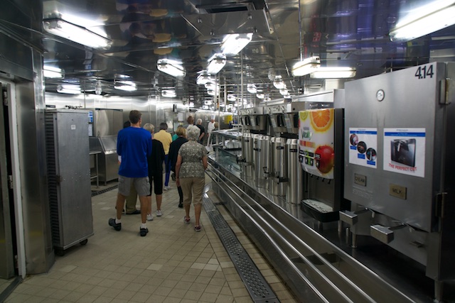 We did some afternoon/evening sea day things including walking around the Promenade deck, a tour of the ship's galley where they cook all our food, and having dinner in the buffet. The first two days we avoided the Main Dining room because we weren’t very hungry since we had late lunches. Tonight we weren’t thrilled with what was on the menu. We then had some ice cream while sitting out near the pool.