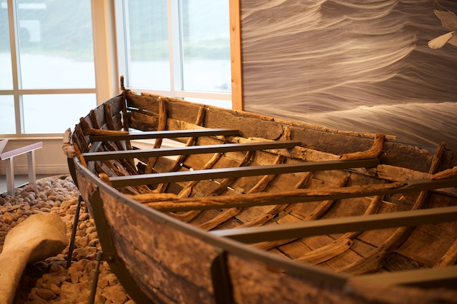 Now, I’ll bet that you have already realized that the Red Bay, Labrador Interpretive Center is not exactly a large building. You are correct. Also, most of the interior of the Interpretive Center was occupied by a small rowboat looking thing, which was the recovered hulk of one of the Chalupa’s (That’s what they called them. I can’t help it if Taco Bell stole the name) which was what the Basque Whalers used to ride in to harpoon a whale which was a hundred times the size of the boat. Crazy-Ass Basque Whalers . So, there was not a lot of room in the Interpretive Center for wet, dripping M.S. Rotterdam passengers.