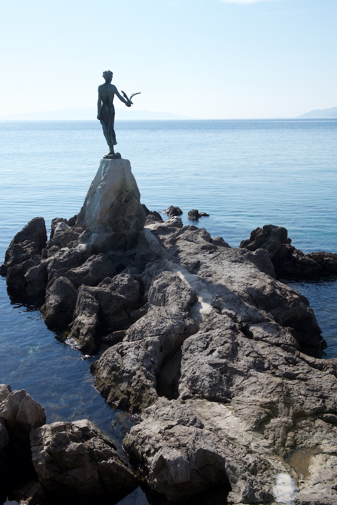 Opatija was really a very pretty little town, adjacent to very beautiful, clear water. We walked for about an hour along the waterside promenade. We saw the "Girl With The Seagull", purportedly a famous statue, which, of course, we had never heard of.
