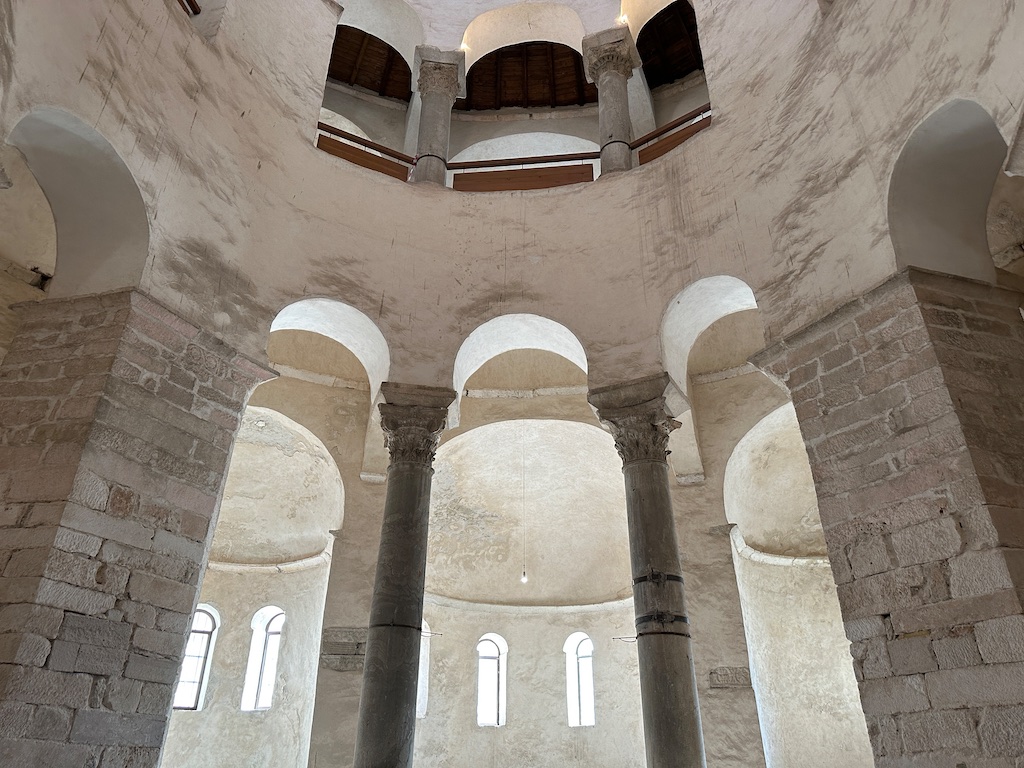 Having read about the things to see in Zadar, the next item on our list was the Cathedral of Saint Anastasia. Checking our devices, we found that we were only a block away so we headed to the front of the cathedral. As we approached we started to hear organ music. When we entered the cathedral, we were enveloped by the huge sound of the large pipe organ on a balcony above the entrance. The sound was magnificent. We enjoyed the concert tremendously. What luck finding the cathedral just at the right time.