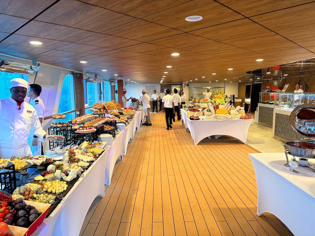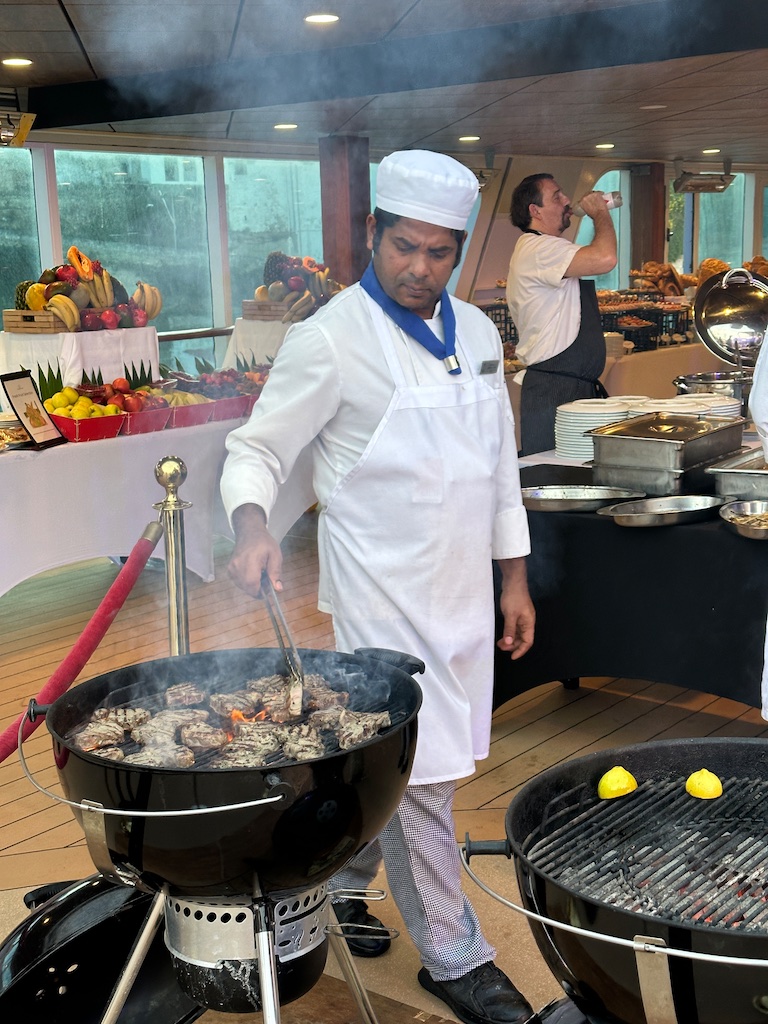 There was a huge selection of food and drinks. They even had charcoal barbecue grills running, on a ship!