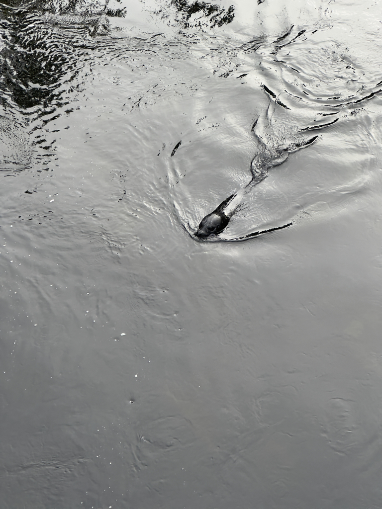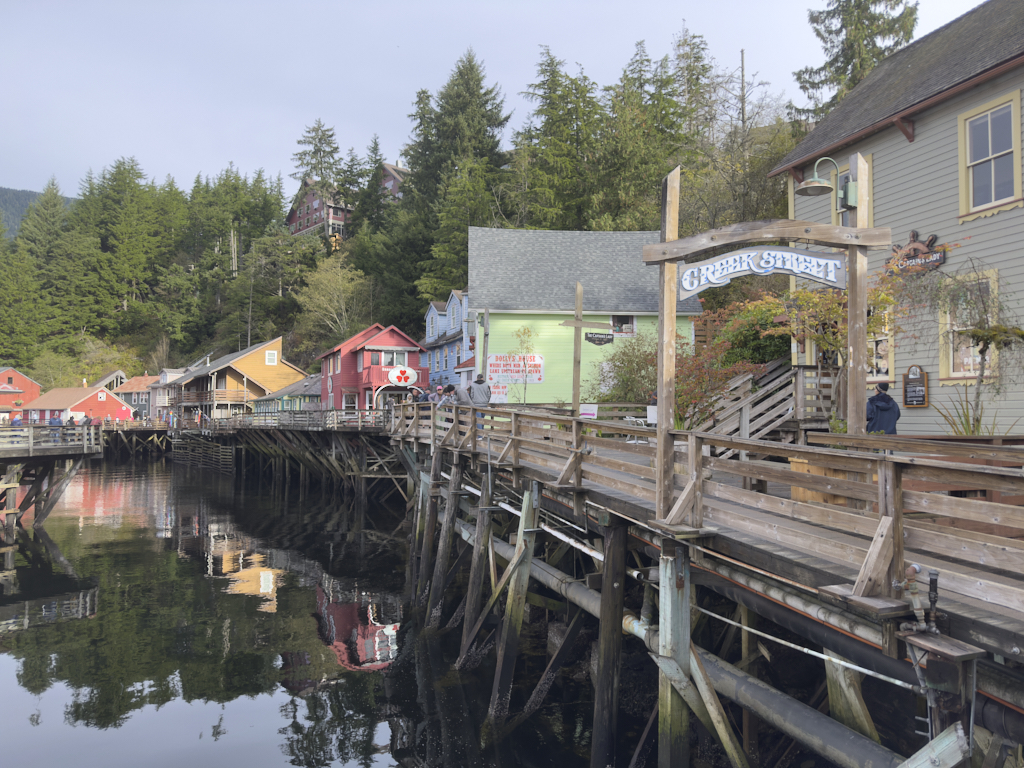 We walked around in the old part of town, called Creek Street, which had a sort of boardwalk along the creek and some historic wooden buildings, which are now tourist shops and restaurants. We even saw several seals in the creek. Ketchikan was just as we remembered it but was less crowded this time. While I wandered around Creek Street taking pictures, Donnie had a very long chat with a local lady who has lived in Alaska for forty years.