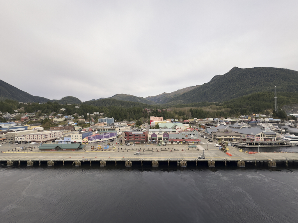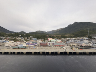We awoke at 6:00 AM to find Ketchikan outside. This was heartening since we were supposed to be there - nice work Captain. Donnie told me that there had been an announcement at 2:00 AM that said that there were Aurora Borealis visible off the port bow. She went out to look but said it was very faint and hard to see. I slept through the whole thing. Later we learned that there had been Auroras on four nights but they didn't announce them all because of the complaints about waking people up. I never saw any of them - drat.