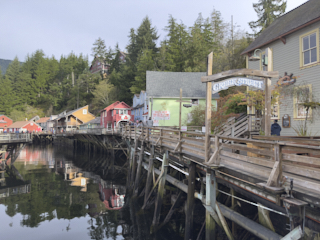 We went out to see Ketchikan about eight AM. I was determined to do something about the noise from the banging closet. The previous evening we went to the convenience store on the ship and asked if they had ear plugs. The nice woman said "certainly" and started to reach for them only to come up empty - they were sold out - very interesting!
