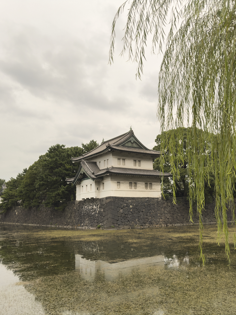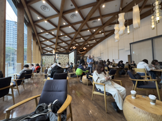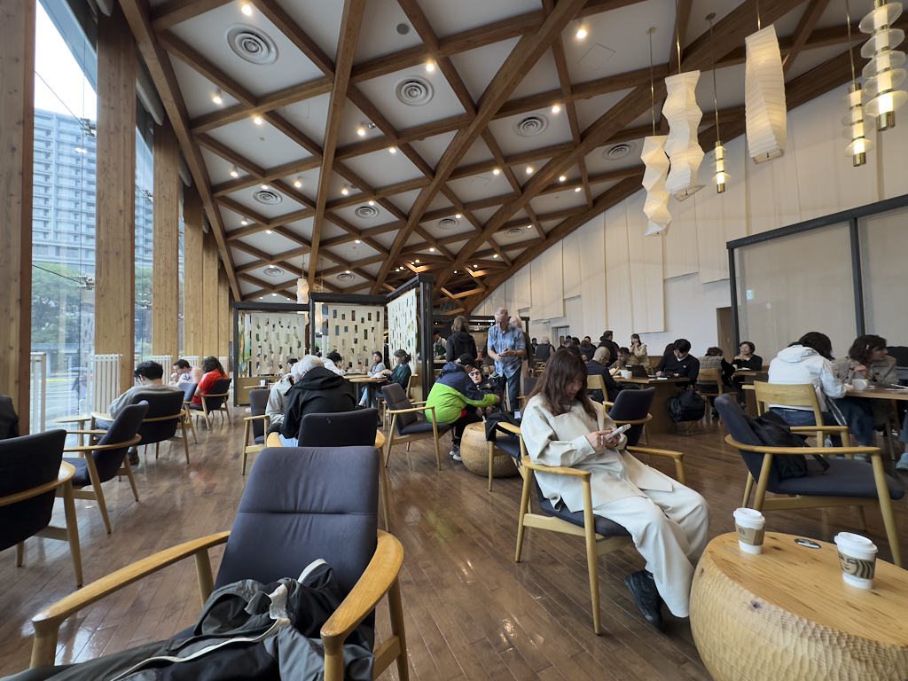 We took some pictures and, since we were nearby, walked a few blocks to the Imperial Palace, or at least as close as we could get, near one of the old guard towers. They do have palace guided tours, but they are on a first-come first-served basis with limited numbers so you have to get in a long line early in the morning and you still don't get to go into any buildings. We decided to bypass that. We did want to visit the Imperial Palace Gardens which are open to the public, but we discovered that the entrance was a 25 minute walk from where we were, and we were too tired for now.On our walk back to the hotel we stopped at a very fancy, modern Starbucks in the middle of a garden plaza. It had a large, very nicely decorated seating area with some comfortable chairs, and although it was crowded we did manage to get some good seats and we relaxed for a while with some surprisingly good Starbucks coffee. Then we went back to our hotel.