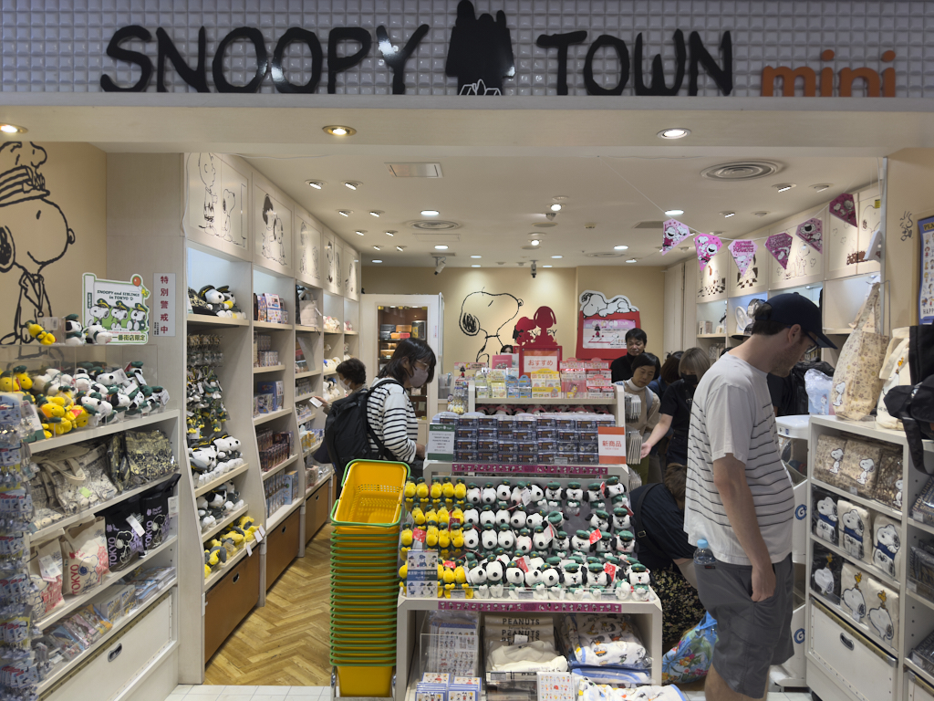 Character Street, an area in a lower level, contained about thirty stores selling items related to Anime characters and other famous characters in popular culture, such as a Star Wars store, a Pokemon store, a Studio Ghibli store, a large number of stores dedicated to Japanese pop culture characters we never heard of, and there was even a Snoopy Store.