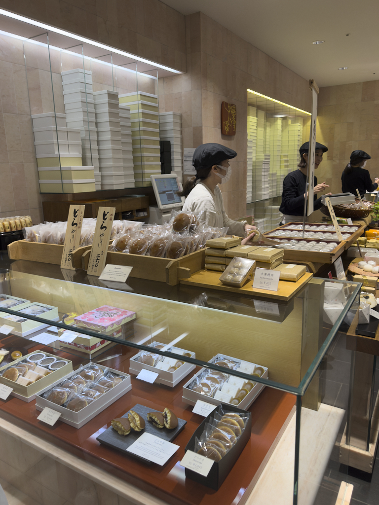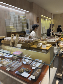 We then decided to go down to the basement level where there was supposed to be a food hall. It was indescribable. The food hall was monumental. There must have been over a hundred counters with every kind of food you could possibly imagine, many with fascinating looking Japanese dishes, but also meats, fish, cheeses, chocolates, pastries, you name it. It went on forever. The displays were gorgeous. We wanted to taste everything. It was much bigger and better than the famous food hall of Harrod's in London.