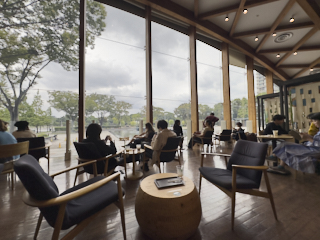 I struggle to describe the Mega Don Quijote store. Donnie called it a dollar store on steroids, although nothing was as cheap as a dollar. Don Quijote stores are a chain of discount "department" stores in Japan, and the Mega stores are the biggest. It had seven floors above ground and one basement level and carries tens of thousands of products. It isn't a department store in the usual sense. Here's a floor layout...After paying for our purchases, and adding a very large gaudily-decorated Don Quijote shopping bag at the register, we went out from the inner chaos of the store to the outer chaos of Shibuya. Donnie suggested we needed another dose of peace, so we went back to the L'Occitane Cafe and Donnie had another orange iced tea, but this time I had a Shibuya craft beer.