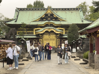 Hiroshige was a Japanese artist during the Edo period and was one of the last great ukiyo-e (“pictures of the floating world”) masters of the color woodblock print. We then had a traditional Japanese lunch in a very nice restaurant right near the museum.Even though the sky was overcast and it seemed to be constantly threatening rain we spent the next two hours wandering around the huge park. Ueno Park has several museums, a zoo, a number of Shinto shrines and Buddhist temples, a lake, and many beautiful trees. We accidentally stumbled into some amazing sights including the Ueno Toshogu shrine also called the Golden Shrine, which is said to have been built in 1627, rebuilt in 1651, and has remained intact since, surviving earthquakes and wars. In 1627 it was dedicated to the memory of Tokugawa Ieyasu, the founder and first shōgun of the Tokugawa shogunate of Japan, more about him later.