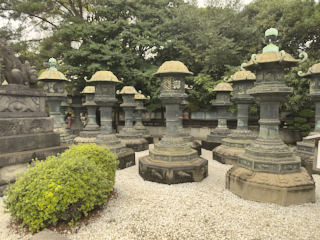 The shrine building itself was raised above the courtyard and you had to go up the very wide stone steps to get to it. The shrine is sacred so no photographs are permitted of the inside. There was a little sign with the usual icon of a camera in a circle with a diagonal line through it. I knew this, but I wanted to get a picture of the courtyard from the top of the steps - not the inner shrine at all, so I walked up and turned around so I was facing away from the shrine toward the courtyard and started to raise my iPhone to take a picture when the uniformed guard, who was carrying a sign on a stick reading "Keep Quiet" ran over to me and shook his head. I pointed out that I was facing away from the inner shrine toward the courtyard. He shook his head again and signaled that I should go down the steps, which I meekly did. I saw him a few times later chasing away people who were shamefully sitting on the stone steps. He took his job very seriously.
