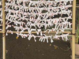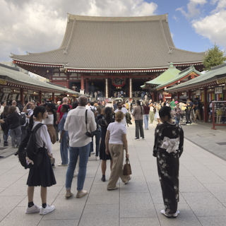 We then went to the Senso-ji temple complex itself, passing through the huge Hozoman gate which houses two statues, three lanterns and two large sandals. It's 74 feet tall and 69 feet wide. Senso-ji is an ancient Buddhist temple and is Tokyo's oldest-established temple. It is the most widely visited religious site in the world with over 30 million visitors annually. Several gazillion of which were there that day. Interestingly many of the women were all decked out in rented kimonos and sandals, a popular thing to do in the area.