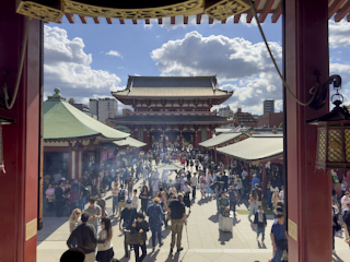 We wandered around, taking pictures of the temple, the gates, the five-story pagoda, and also visiting the nearby Asakusa Shinto shrine. Buddhist temples and Shinto shrines are frequently right near each other. Many Japanese adhere to a mixture of both religions.
