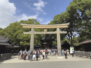 The shrine is located in a forest that covers an area of 170 acres. The entrance was guarded by an immense beautiful wooden Torii gate. Shinto shrines all have a Torii gate. Buddist temples don't - they have more elaborate gates. One interesting thing - Shinto worshipers bow whenever they pass under the Torii gate, both going in or out of the shrine.