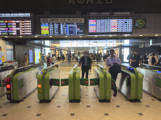 We got a taxi at the taxi stand and a very helpful taxi stand manager helped us indicate our destination to the driver and assured us that he would accept credit cards. About half an hour later we were at our hotel. The hotel, The Hotel Metropolitan Tokyo Marunouchi, was on the 27th through 34th floors of an office building which was only a few feet from one of the entrances to Tokyo Station, a major transit hub. We took an elevator to the 27th floor lobby. Our room wasn't going to be ready until 3:00 PM, so we dropped off our bags and went out.